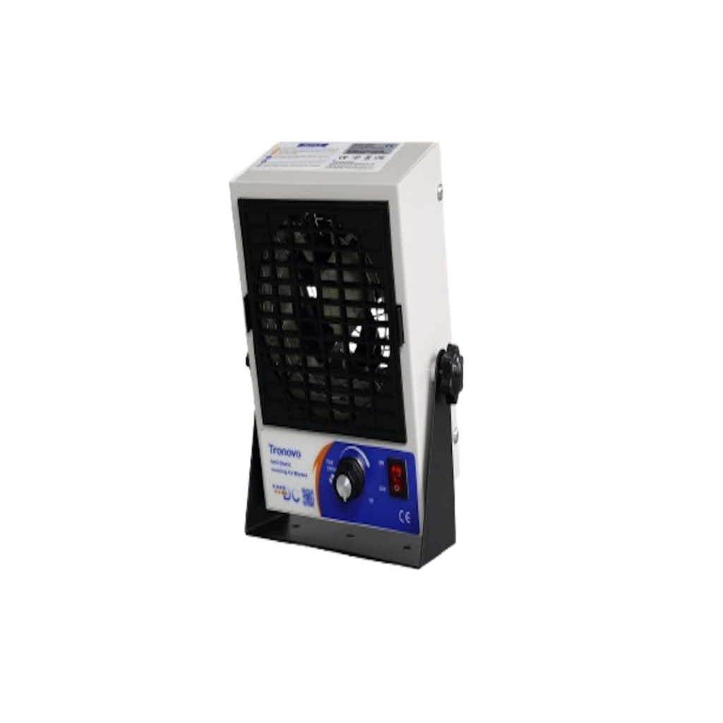 Bench top lonizing blower for fast and focused static elimination on products. High performance and versatile with various fan speeds.